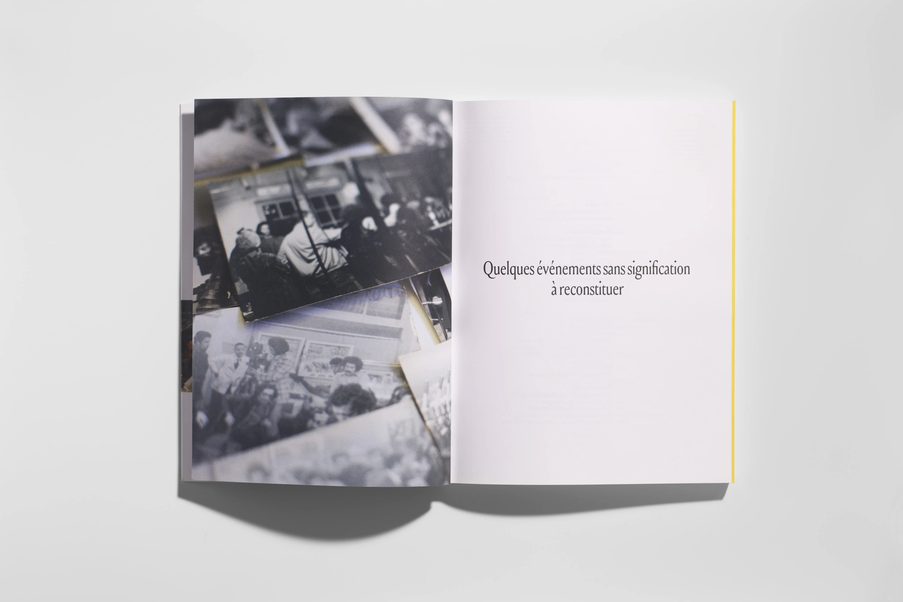 Cet ouvrage présente la recherche de Léa Morin autour du premier film, longtemps invisible, du cinéaste marocain Mostafa Derkaoui De quelques évènements sans signification (1974), qui a conduit à sa récente restauration et diffusion internationale. Loin de se cantonner à une histoire cinématographique, ce « livre-archive, livre-enquête, livre-action » esquisse à partir des pistes multiples ouvertes par le film, une constellation de micro-histoires qui sont autant de réflexions et propositions de récits à faire émerger sur le Maroc culturel, artistique et politique des années 1970.