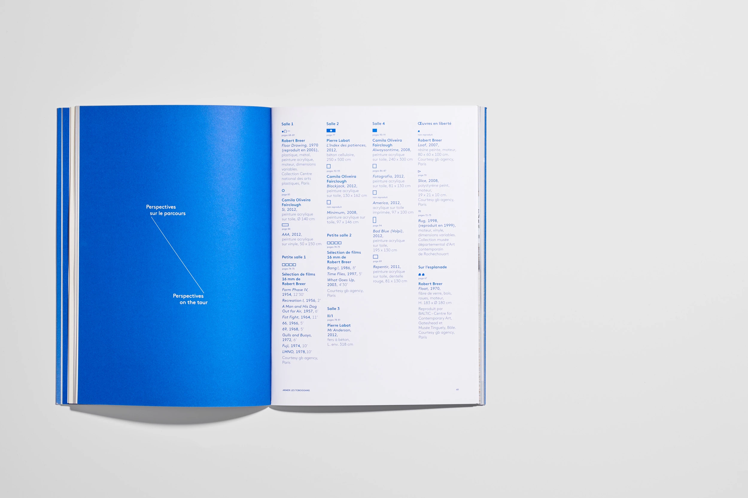 Ce choix curatorial est né d'une envie de mêler fructueusement les esthétiques de Robert Breer, Pierre Labat et Camilla Oliveira Fairclough. Le catalogue, défini ici comme un « espace spécifique », agit comme un hypertexte où les auteurs analysent globalement l'œuvre des artistes et pas seulement les travaux exposés.