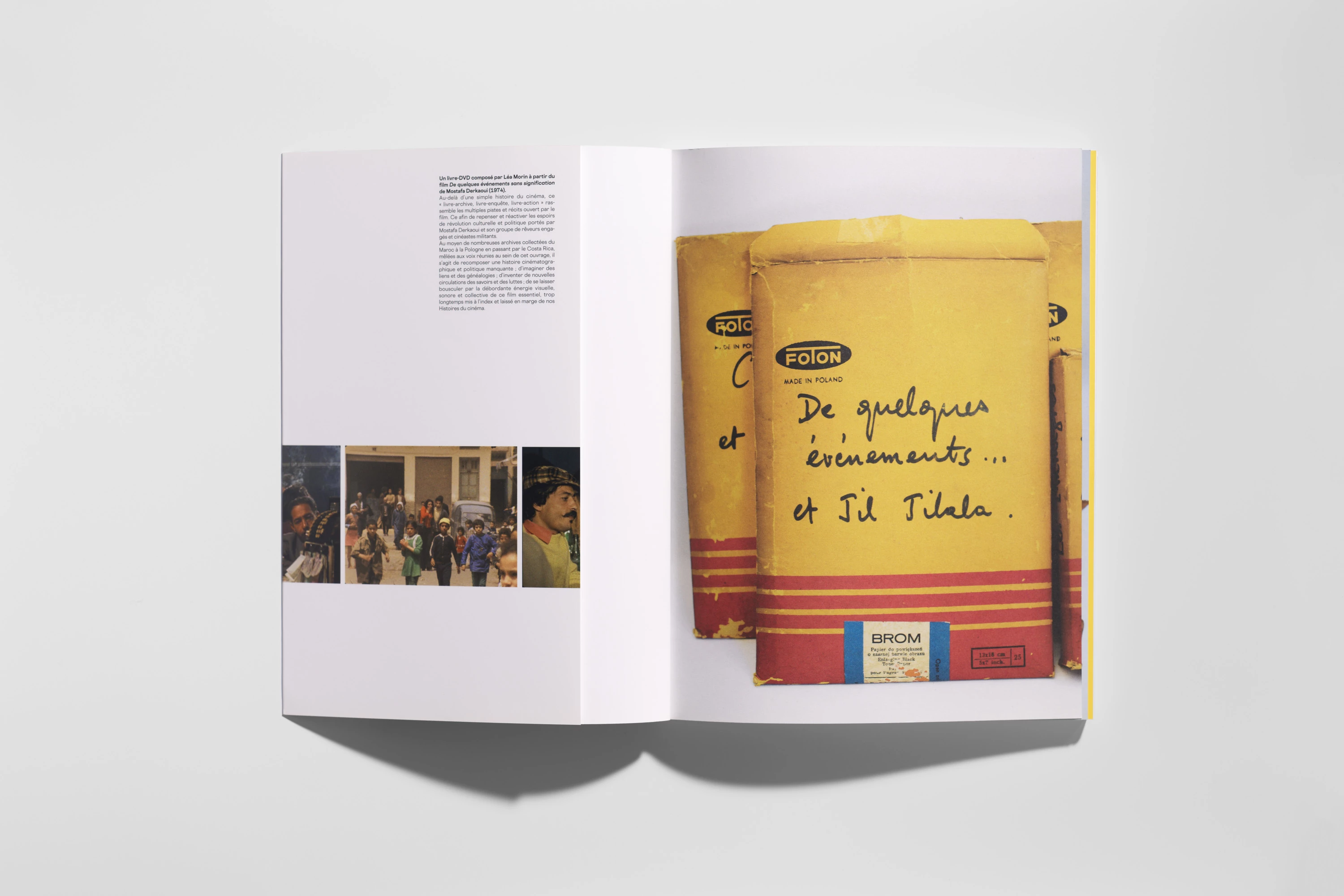 Cet ouvrage présente la recherche de Léa Morin autour du premier film, longtemps invisible, du cinéaste marocain Mostafa Derkaoui De quelques évènements sans signification (1974), qui a conduit à sa récente restauration et diffusion internationale. Loin de se cantonner à une histoire cinématographique, ce « livre-archive, livre-enquête, livre-action » esquisse à partir des pistes multiples ouvertes par le film, une constellation de micro-histoires qui sont autant de réflexions et propositions de récits à faire émerger sur le Maroc culturel, artistique et politique des années 1970.