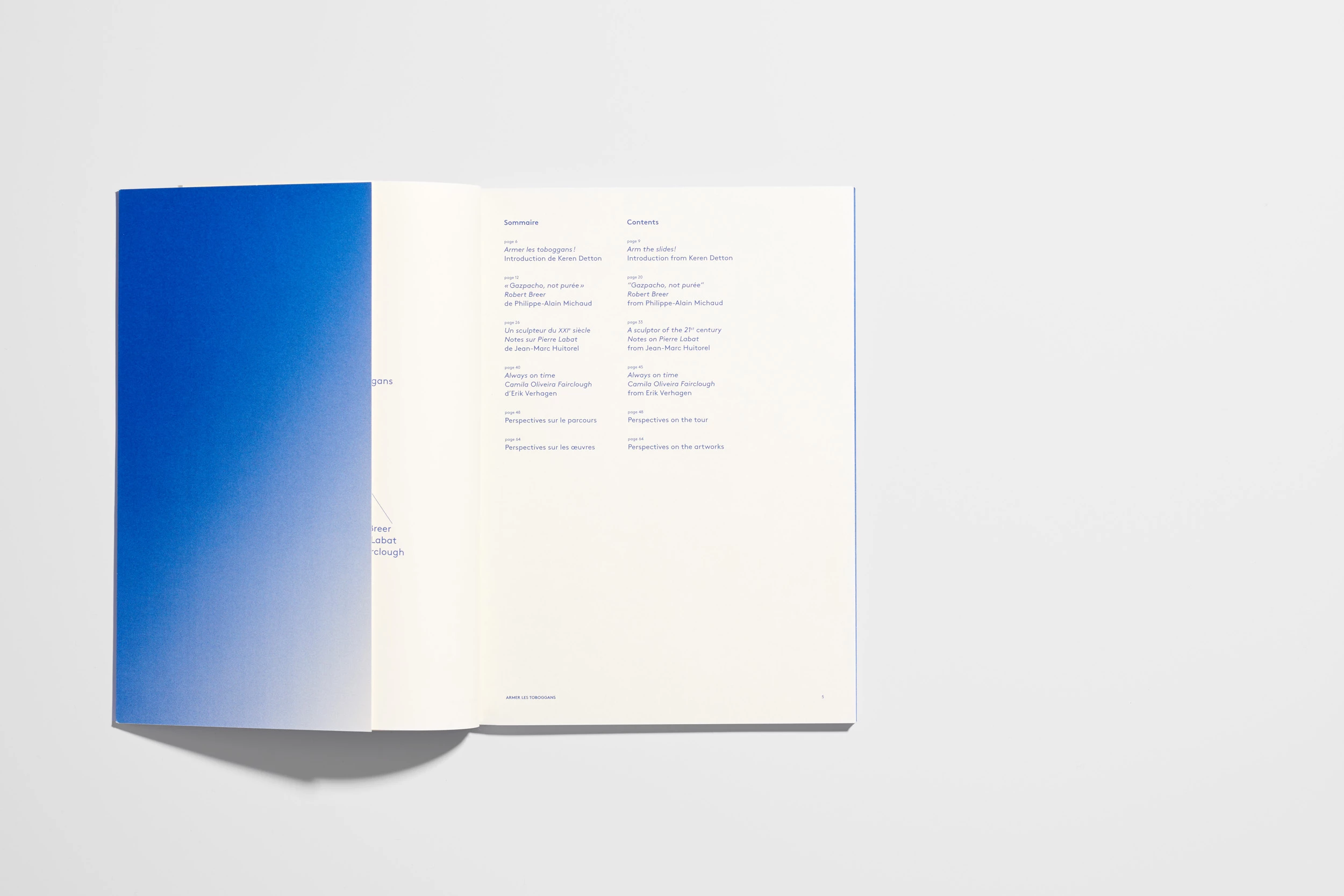 « Ce sont moins des choix formels qui relient ces trois artistes qu'une certaine résistance aux normes établies », suggère Keren Detton dans une courte introduction au livre témoin de l'exposition Armer les toboggans du Quartier à Quimper.