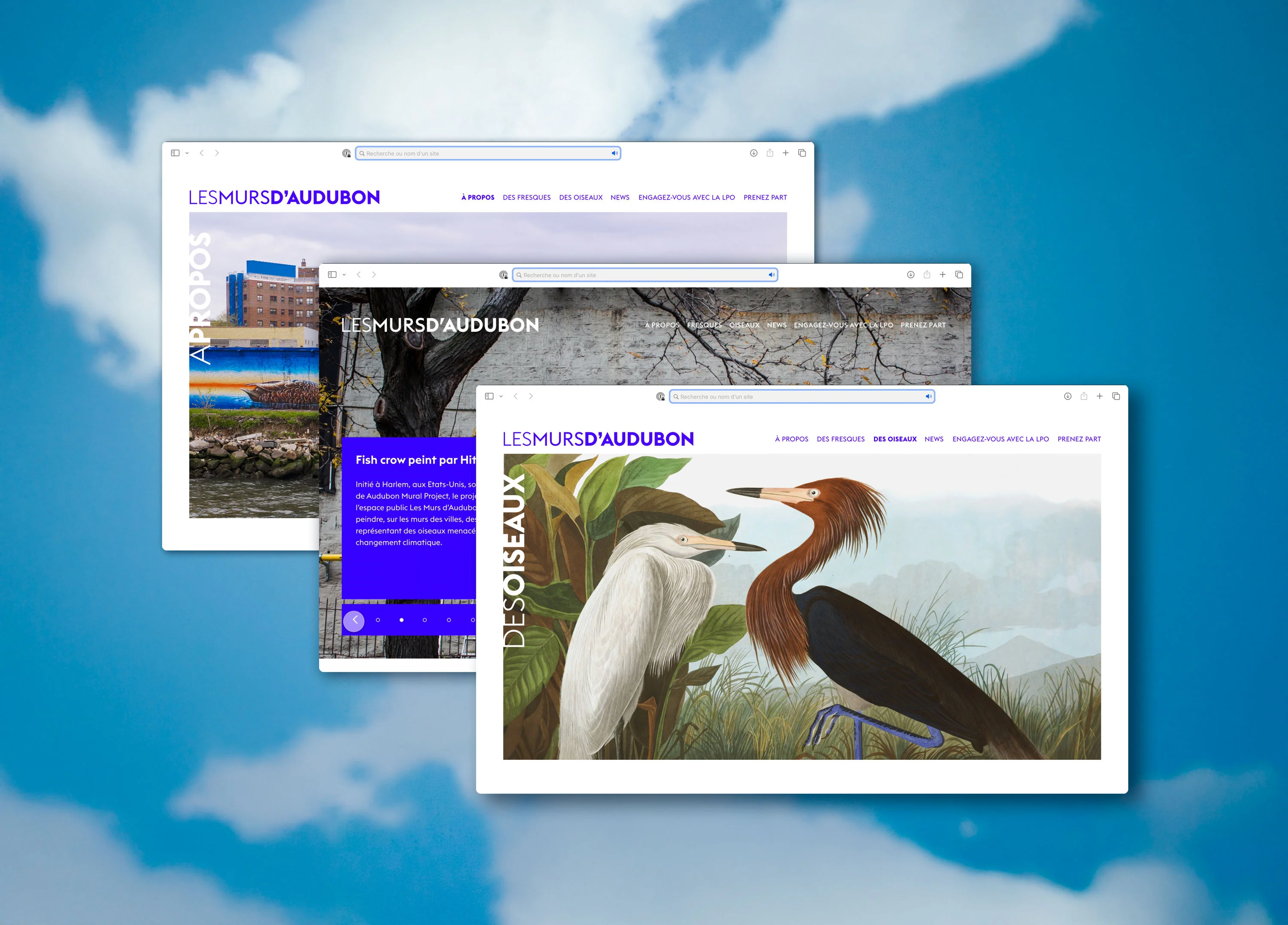 Conception graphique et ergonomie du site Internet des Murs d'Audubon, pour COAL, Coalition pour une écologie culturelle